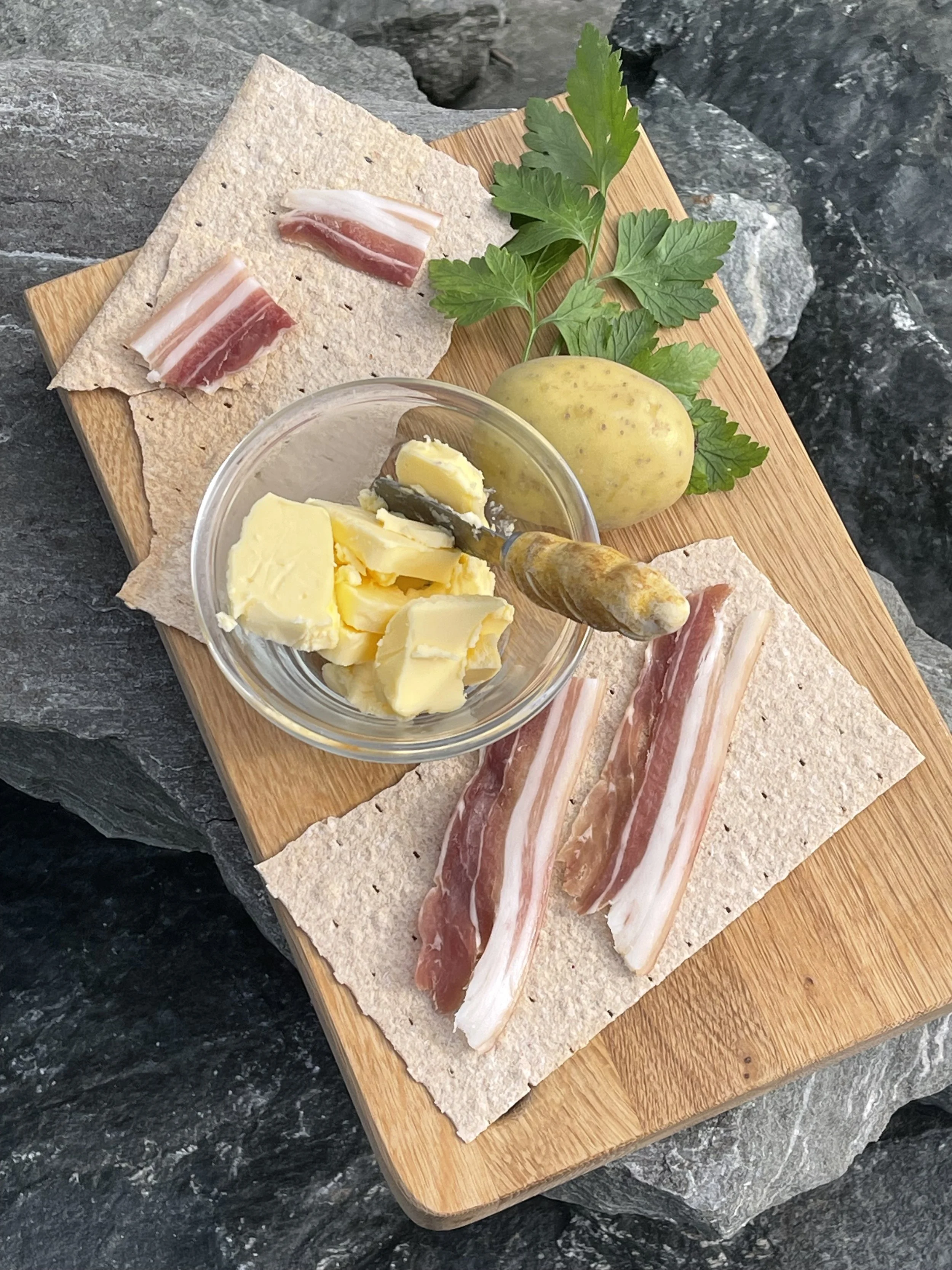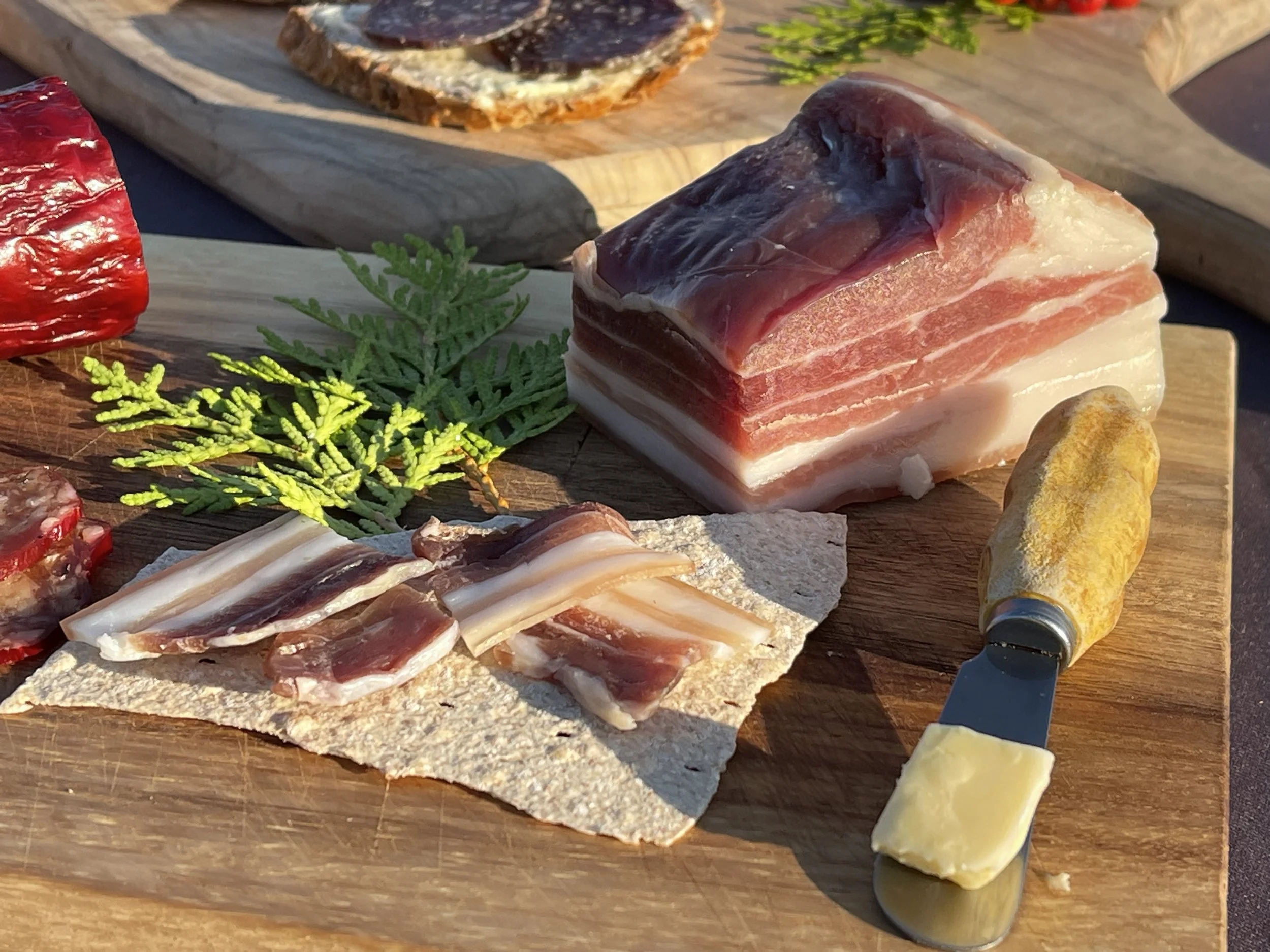 Speka sideflesk av gris som er naturleg mjølkesyremodna med salt, slik som dei gjorde det på gardane før i tida.